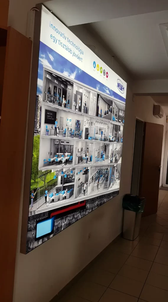 A textilbox egy könnyen összeszerelhető és szállítható, feltűnő reklámeszköz. Az összeszerelését akár egy ember is gyorsan megoldja, mindenféle szakértelem nélkül. Változatosságát az átvilágítós, nyomtatott textil biztosítja, melyet könnyű szerrel, bármikor lecserélhetsz benne a szezonális trendeknek megfelelően. Energiatakarékos, alacsony fogyasztásának köszönhetően a kiállítások kedvelt megjelenési formája, mely lábon álló, függeszthető, vagy akár belógatható változatban is megvásárolható. A takarékos LED világítással szerelt dobozok hálózati áramforrásról üzemeltethetőek. Erős fényhatásuk és élénk színeik szabályosan vonzzák magukra a figyelmet! Főbb felhasználási területei: kiállítások dekorációjaként, elválasztó és belsőépítészeti elemként, sajtófalként, megállító táblaként, feszített háttérként kirakatokban.